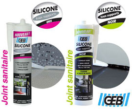 mastic joint silicone couleur noir ou gris  Mastic silicone  de couleur noire ou gris cartouche de 280 ml. Prix à partir de 6.60 € la cartouche GEB ,