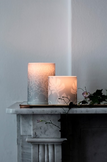 Des bougeoirs aux décors très nature en transparence prêt à magnifier la déco de la pièce. ©BrosteCopenhagen