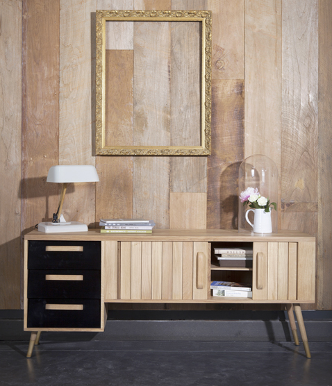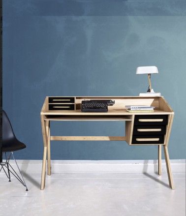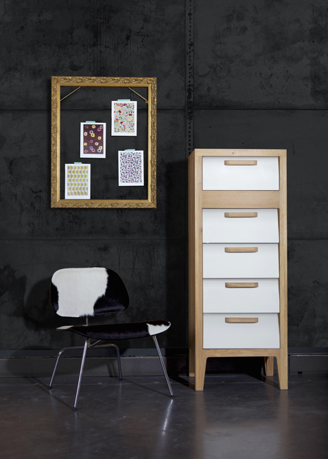 Une autre version du meuble bureau vintage. La collection Mr Marius vous permet de personnaliser votre meuble pour l’adapter aux couleurs de la pièce. Les façades des tiroirs sont disponibles en noir, blanc et chêne naturel.