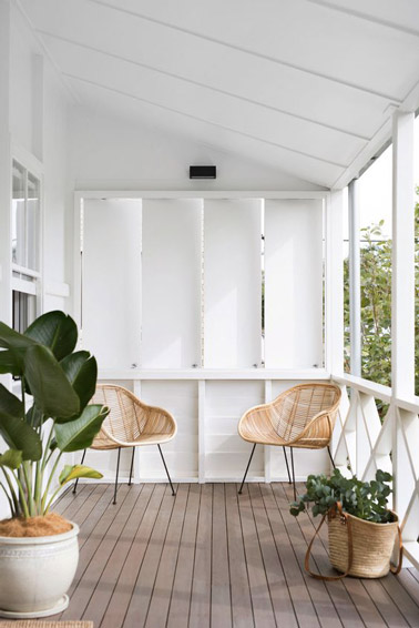 Déco naturelle sur la terrasse avec des fauteuils en rotin