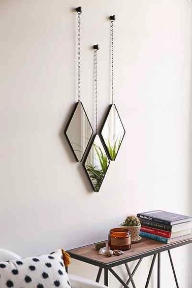 Trois miroirs losanges pour compléter la déco de la chambre