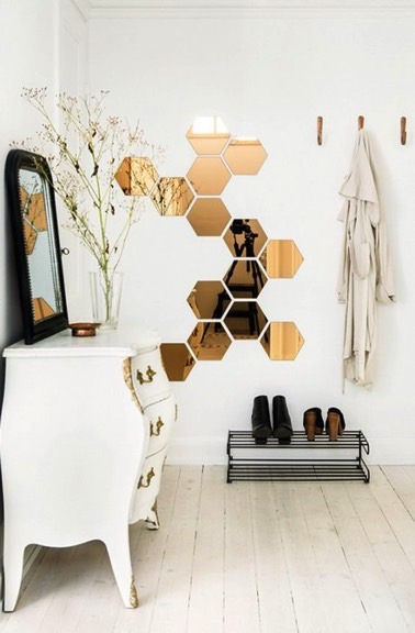 Le hall d’entrée sublimé par des petits miroir de formes hexagonales
