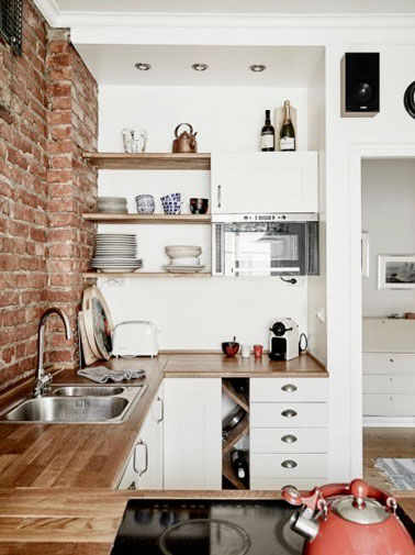 Fans de déco stylée, faites votre cuisine avec un mur en brique ! Cuisine esprit campagne ou industriel avec un mur en brique naturelle ou peintes en blanc, noir, rouge, choisissez votre type de mur de brique et aménagez un look déco dans votre cuisine !