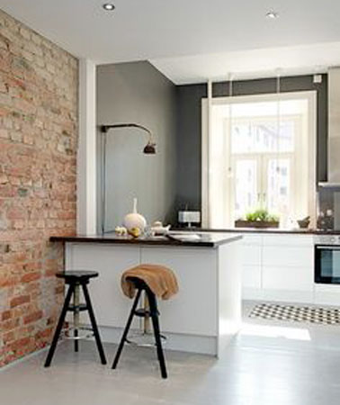 Peindre un mur de brique en blanc pour une cuisine tendance