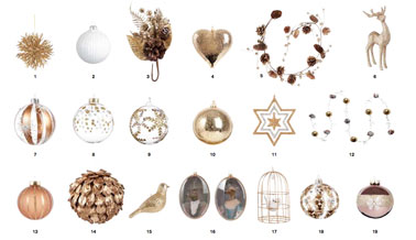 Comment ne pas associer l’or aux festivités de Noël ! Une collection déco sapin de Noeël pour faire fi de la grisaille et afficher un esprit chic et raffiné.