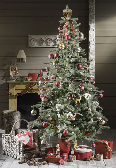 La décoration du sapin de Noël comme dans un chalet de montagne