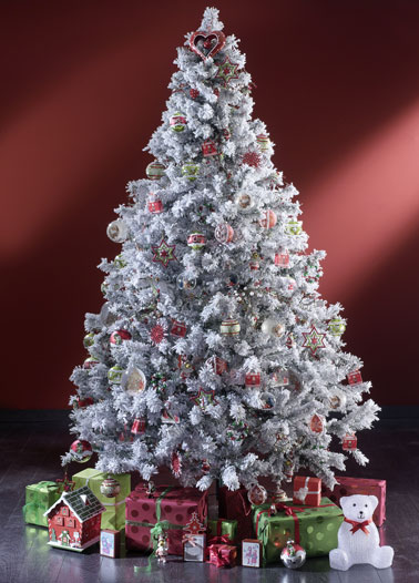 Un sapin de Noël tout de blanc vêtu pour une ambiance raffinée et chic qui s’intègre à tous les styles de décoration du salon. Conseil déco : Pour les paquets cadeaux, maintenez la magie avec du papier cadeau et des rubans dans des couleurs neutres (blanc, gris, noir) et argenté.