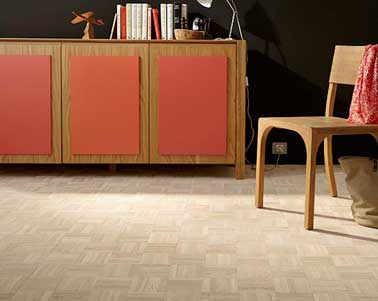Pose flottante pour les parquets contrecollés et stratifiés. le parquet flottant dispose généralement d’un système de clipsage (parquets clipsés) permettant d’unir les lames entre elles sans colle. A l’inverse pour les parquets « à rainures et languettes » l’utilisation d’une colle est obligatoire pour réunir les lames entre-elles.