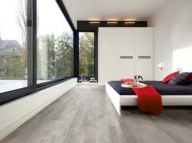 Belle lumière dans la chambre avec ce parquet stratifié imitation chêne placé en pose flottante. Il est traité pour les passages intensifs et s’entretien facilement comme un carrelage. Structuré avec un effet relief uniforme, il est composé de 4 chanfreins, pour un effet lame de parquet.
