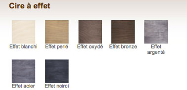 Nuancier cire à effet 7 teintes pour un effet métallique ou blanchi sur meuble bois. Cire à effet Libéron prix :11.90 € le pot de 0.25L