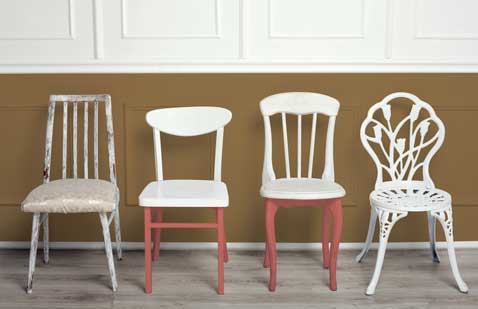 Chaises repeintes avec la peinture 1825 « Glosfish » et bas de mur « Toffee »