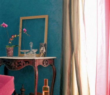 Pour faire vivre les couleurs de la chambre ou celle du salon à l’heure indienne, adoptez cette peinture à effet sablé et aspect métallisé. Clin d’oeil à la route de la soie, cette peinture à effet aux couleurs chatouillantes s’inspire des riches étoffes rapportées de la route de la soie en Orient. Idéal pour donner un côté chic à votre déco. Nuancier 9 couelurs : Taffetas rose, Soie de Damas, Sari Indien, Panne de Velours, Lurex, Shantung, Organza, Lame Argent. Prix : 49,90 € le pot de 2,5 L Rendement : environ 15 m². Peinture à effet Autour de La Soie Chez maisondecopeintures.com