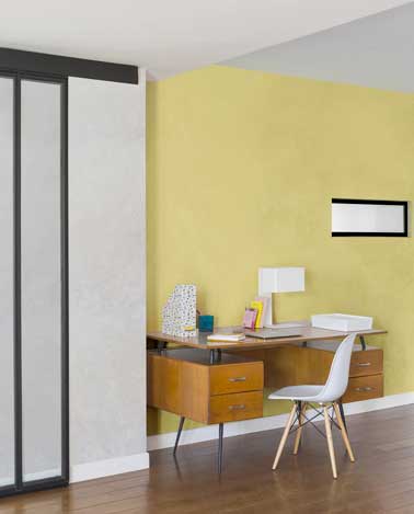 Un coin bureau lumineux avec une peinture à effet nacré jaune