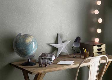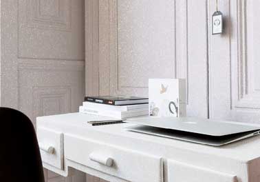 Les murs et le bureau de cette pièce sont entièrement couverts de peinture pailletée pour créer une ambiance douce et moderne à la fois. Une idée éclatante qui sera bienvenue dans une chambre de fille ado ou pour relooker une entrée.