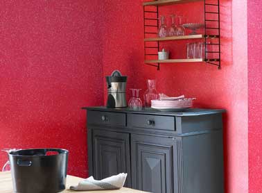 La couleur cuisine monte en gamme avec une peinture rouge à paillettes