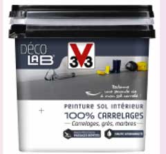 Actu à noter : V33 propose depuis peu une autre peinture carrelage sol garantie 100% adhérence. Sa spécificité tient dans l’ajout d’un additif sous forme de dosette qu’il est impératif de mélanger directement dans le pot de peinture avant de commencer à peindre et après que le carrelage ait été lessivé et dégraissé avec le shampooing sol V33. Le mélange peinture plus additif est a utilisé dans les 8 jours pour que la qualité de son adhérence sur le carrelage ne soit pas altérée. Une peinture facile à appliquer direct sans sous-couche.