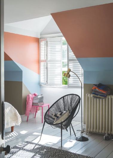 Une chambre sous pente prend des couleurs avec 3 teintes de peinture sur ses murs ! Photo Farrow & Ball