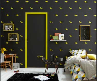 Une peinture chambre ado noire rigolote avec des dinosaures jaune