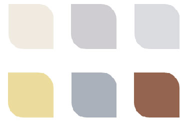 Construire une palette couleur de chambre zen : De gauche à droite : Poudre D’ivoire, Poudre De Riz, Sorbet Citron, Gris Charme, chocolat. Nuancier Peinture dulux Valentine.