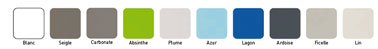 Disponible en dix couleurs : Blanc, seigle, carbonate, absinthe, plume, azur, lagon, ardoise, ficelle et lin.