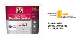 La peinture Rénovation Cuisine V33 est disponible dans les grandes surfaces de bricolage.
