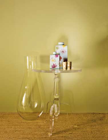 A couper le souffle, cette déco de l’entrée avec sa peinture de couleur vert clair ! Une nuance super lumineuse, qui s’exprime complètement dans cette image avec une table basse en plexiglas et un grand vase en verre. La transparence du verre répond à la luminosité des nuances de vert dans un subtil jeu de reflets. Pétillante et dynamique, cette couleur fraîche s’harmonisera bien aussi avec des nuances beige, écru, taupe ou gris. Une peinture à appliquer sur les murs d’une petite pièce sombre pour l’éclairer et la réveiller.
