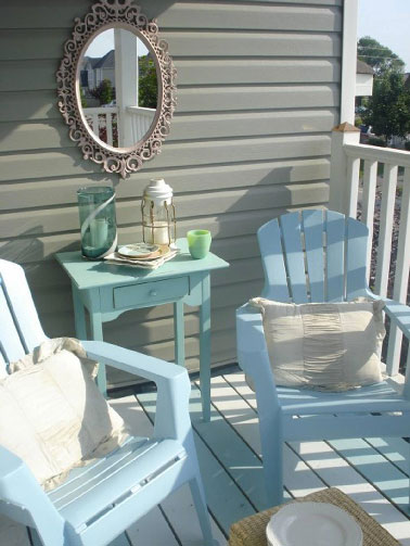 En extérieur, la peinture pour plastique est idéale pour les chaises de jardin, tables, transat… les fenêtres et volets plastiques, les gouttières…