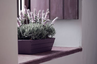 Changement de look pour la jardinière en plastique maintenant assortie au violet des pieds de lavande en fleurs. Photo : Julien
