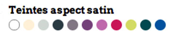 Pour vous permettre toutes les créations possibles, vous avez le choix entre onze couleurs de peinture : Bleu officier, vert marin, vert pomme, griotte, fushia, prune poivre, gris perle, blanc cassé et blanc.