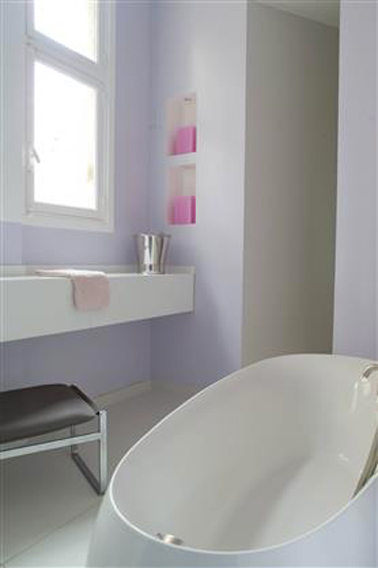 Une peinture salle de bain couleur lilas, un bain de fraicheur !