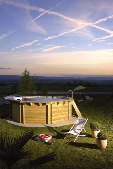 Ambiance absolument nature avec cette piscine bois hors sol de forme octogonale délicate et romantique. ©Desjoyaux