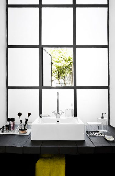 Pour refaire sa salle de bain avec une déco comme nulle autre pareille, détourner un objet, par exemple une sculpture en pierre, un tonneau de vin, un vélo, comme sur la photo ci-dessous, après un peu de transformation peuvent vous faire un plan vasque original, un brin décalé et à coup sûr unique.