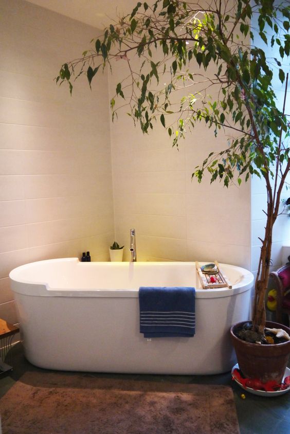 Vous avez de grandes fenêtres dans votre salle de bains et recherchez l’intimité ? Et si vous disposiez un grand ficus devant ? Pouvant atteindre une grande taille, ils formeront un magnifique rideau. Profitant de la lumière naturelle, il ne pourront que s’épanouir.