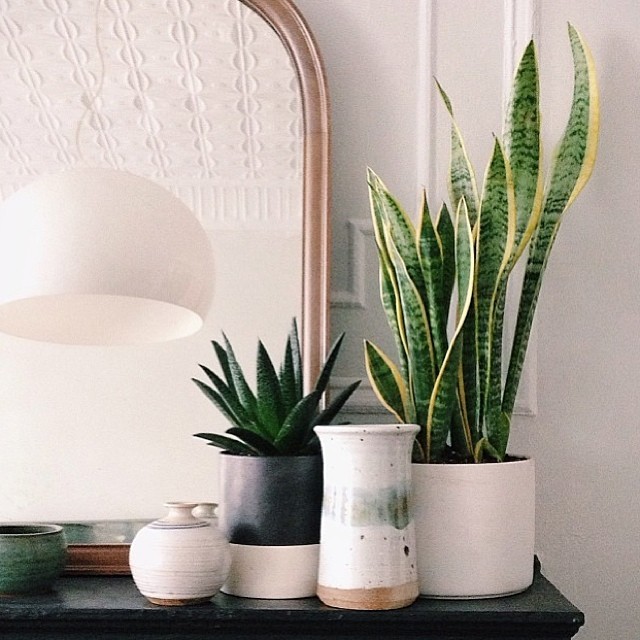 Sansevieira, plante dépolluante, dans la salle bains de préférence à faible luminosité.