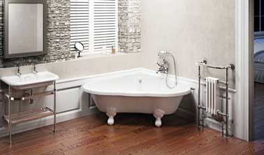 Vous devez installer une baignoire dans une petite salle de bain ? Adoptez une baignoire d’angle pour un look zen. Particulièrement adaptée aux petites surfaces et aux salles de bains de taille moyenne, elle se place comme son nom l’indique dans un angle de la pièce, offre un gain de place intéressant et permet d’être couplée à une douche . Très généreuse, la baignoire d’angle offre aussi, selon ses dimensions, la possibilité de prendre un bain à deux !