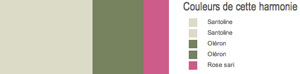 Nuancier peinture pour associer un rose sari et un vert bronze et une lumineuse couleur lin