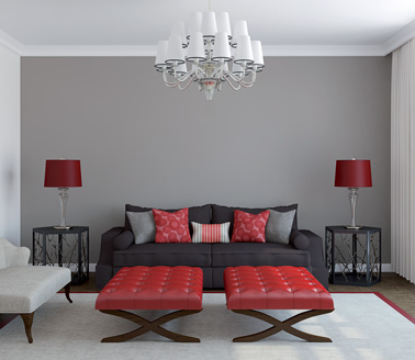 Couleurs salon en gris et rouge ambiance moderne soft