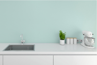 Pour ces deux zones, une peinture cuisine lessivable est fortement recommandée. Pour les autres murs, le choix d’une peinture lavable sera suffisant si votre cuisine est équipée d’un système d’extraction.