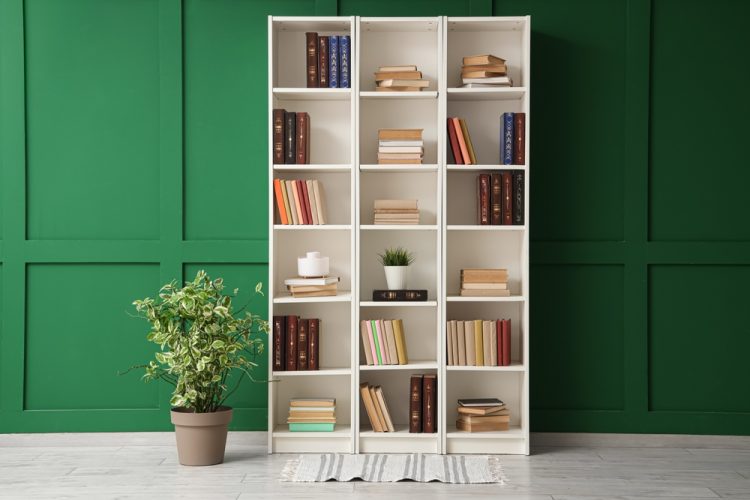 - Bibliothèques ouvertes : elles accueillent vos livres, mais aussi des objets déco, des plantes ou des cadres photo. Elles structurent la pièce et donnent du style.