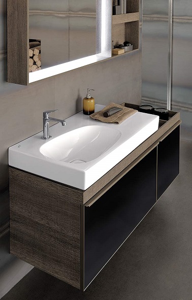 Le vieux lavabo n’a plus sa place dans une salle de bain refaite ! Il convient donc de changer cet élément sanitaire en adoptant de préférence un plan vasque moderne aux lignes graphiques. Suspendu, il libère de la place au sol et arbore un look contemporain. On peut aller jusqu’à choisir des robinets déco qui apporteront la touche finale à ce nouveau meuble tendance. CITTERIO de Kerad Mag Design, plan de toilette autoportant, 90x50cm chez Aubade.