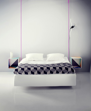 Une fois tout lit et chevets remis en place, donnez l’impression que votre lit est suspendu en fixant sur le mur deux hauteurs de cordes de couleur à l’aplomb du lit de manière à ce que les cordes tombent le plus près possible des bords du lit. Dernière petite touche déco qui va permettre d’éclairer la tête de lit d’un doux halo de lumière, fixez un simple stop le long d’une des cordes.