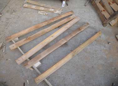 Pour commencer procurez vous des palettes bois chez un spécialiste ou aux encombrants. Préférez du bois de bonne qualité et privilégiez les chutes de traverses de palettes avec des noeuds de bois bien voyants pour un résultat plus esthétique sur les contres marches.