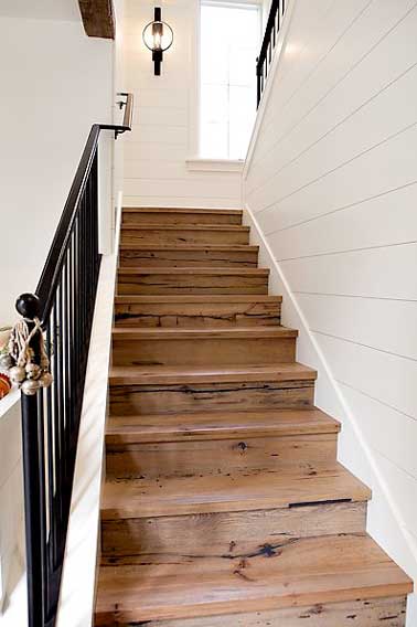 Voilà un bel exemple de rénovation d’escalier réalisée avec des palettes bois collées. Sur les contres marches on a privilégié des noeuds de bois très décoratifs. Les finitions sont faites avec du vernis mat pour un effet naturel. Vous savez tout, maintenant à vous de relooker votre escalier avec des palettes. Bon relooking !