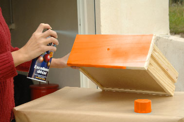 Pour éviter les coulures de peinture sur le meuble pulvérisez la peinture à une distance de 15 à 30 cm du meuble. Photo Julien