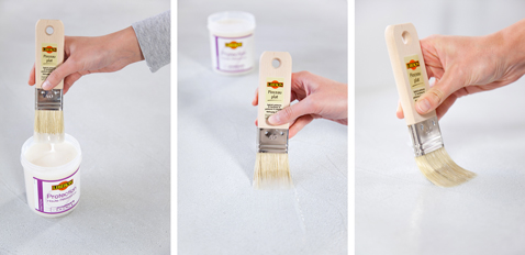- Pour assurer une protection haute résistance aux alimentaires et ménagères sur le plan de travail appliquez la finition blanchie. Mélangez la finition et l’appliquez au pinceau en couches croisées et régulières; Terminez en égalisant le produit dans le même sens (séchage 2h).