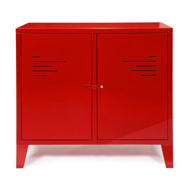 - Inspiration loft, la commode deux portes rouge en métal 129€ au lieu de 175,90€ chez Alinéa