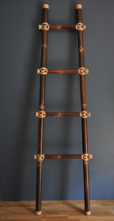 Un porte serviette échelle en bambou posé contre le mur de la salle de bain , un accessoire déco simple mais pratique pour avoir ses serviettes de toilettes à portée de main. Souvent en bois , l’échelle reste plus design et originale qu’un porte serviette classique et se révèle être moins encombrante. Echelle en bambou/ Porte serviettes Prix: 41 euros chez Saniteck France.