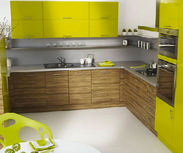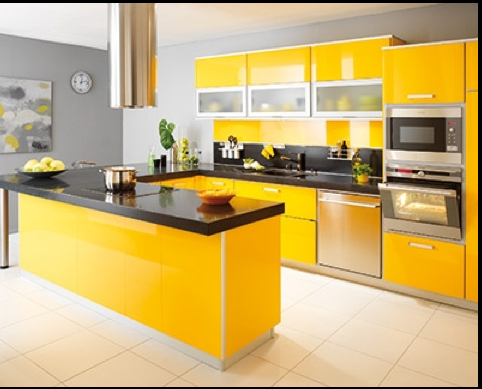 Si vous choisissez une couleur tonique pour vos meubles, comme un jaune, rouge ou orange, choisissez de préférence une peinture de couleur neutre pour les murs. Par exemple, comme sur la photo, meubles jaune et peinture grise pour les murs. Avec des meubles de cuisine taupe, ou en bois ciré ou vernis clair, préférez une peinture murale bleu pour booster le contraste couleurs.