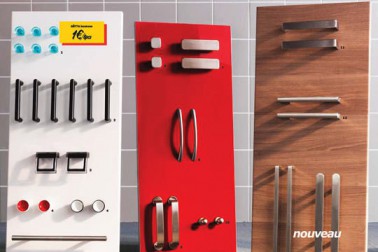 Au rayon poignées pour porte et tiroir, vous avez l’embarras du choix entre les différents styles (contemporain, rétro, fantaisie…) les différentes formes et matériaux (alu brossé, verre, plastique, bois peint ou à peindre). Pour ne pas avoir à percer les portes des meubles, pensez à vous munir d’une de vos anciennes poignées pour choisir le même écartement de visses.