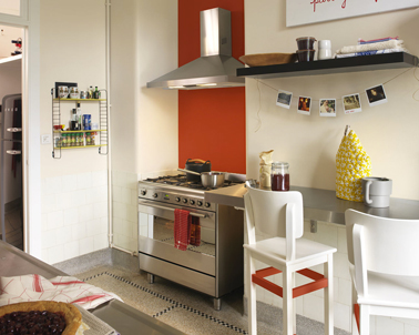 Conseil déco : Si vous choisissez d’associer plusieurs couleurs de peinture dans la cuisine, réservez la couleur la plus soutenue pour un seul mur, l’impact couleur sera plus fort et vous ne réduirez pas l’impression d’espace dans votre cuisine.